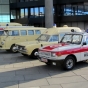 KTW und RTW aus dem Rotkreuz-Museum vor der Messe Nürnberg, darunter ein Wartburg Tourist 353 (im Vordergrund) und ein Barkas B 1000 (2.v.l.) aus der ehemaligen DDR. Foto: Auto-Medienportal.Net/Messe Nürnberg